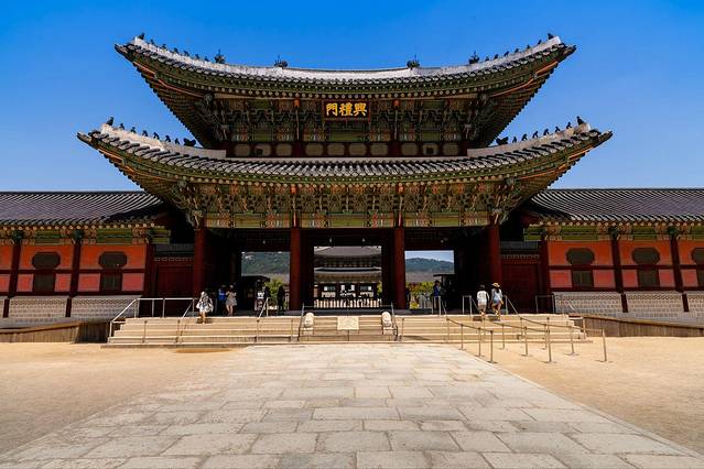 景福宫是朝鲜王朝的太祖李成桂在朝鲜洪武二十八年将原来高丽的首都迁移时建造的新王朝的宫殿,具有500年历史。 景福宫得名于中国古代《诗经》中有“君子万年,介尔景福”的诗句,因位于首尔北部,也叫“北阙”。