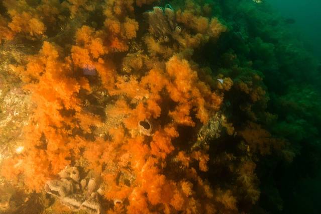 在水深30米,观看以黑角珊瑚、海绵动物、海扇珊瑚、红色软珊瑚、大海葵珊瑚、石珊瑚等组成的世界最大软珊瑚群落。有可能是天气不好,水中很昏暗,看出去也没啥吸引人的。而水下四十米的沉船根本就只能看到点大概的轮廓。