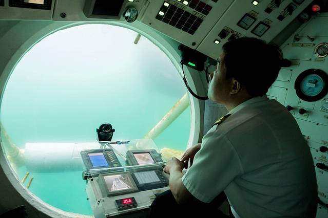 在芬兰制造的芝雅号是在世界上现存最新型观光用潜艇,有67个座位的世界最大观光用潜艇。可以潜水到57米的深度。共26个舷窗。