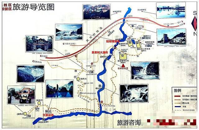 黄果树瀑布位于安顺市镇宁布依族苗族自治县,是亚洲最大的瀑布,也是全国第一瀑布,由18个风韵各异的大小瀑布组成,其中以黄果树大瀑布最为优美壮观,堪称世界上最典型的喀斯特瀑布群。