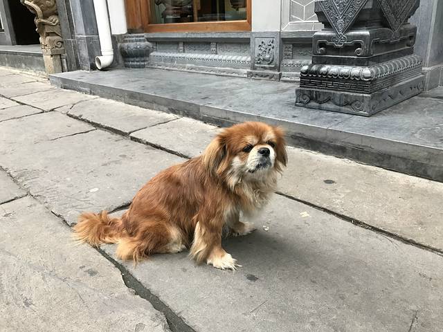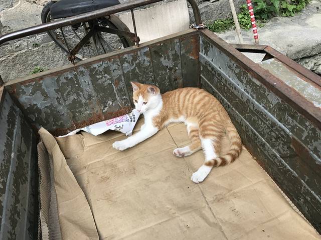 一辆老旧的三轮车停在路边,小黄毛好似刚刚再车里睡了个午觉,咪蒙着眼睛,醒来看看外面的世界,又来了多少游客?嘿,这个小哥真帅呀