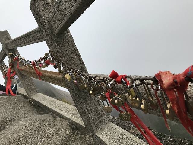 下了光明顶,在酒店附近简单地吃了个饭,出发前往迎客松,路上,能看见游客们锁的同心锁
