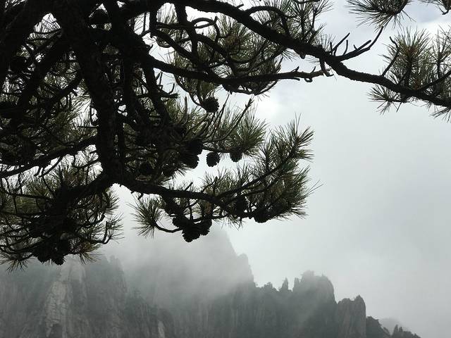 其实天气预报早就报道黄山这几天天气不太好,但是自己还是想去看看,上山的时候大雾弥漫,啥都看不见,临近中午,来了阵风,将雾气吹散了些,于是近处的群山露出了真容……