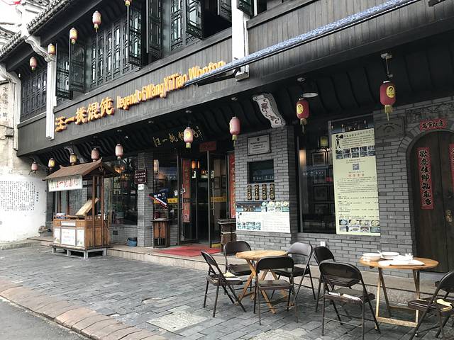 在车上和司机聊天,说到屯溪最出名的餐厅,司机说还要属汪一挑馄饨,之前湖南卫视《偶像来了》还到呈坎的分店里录制去了,于是我们就寻寻觅觅来到了屯溪老街的这家店里