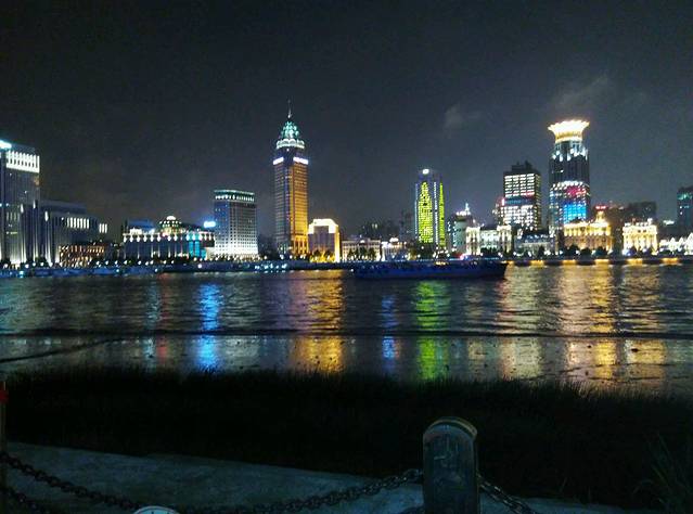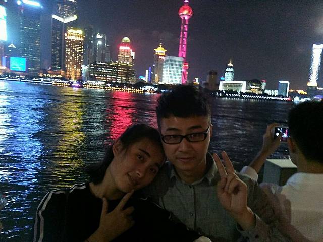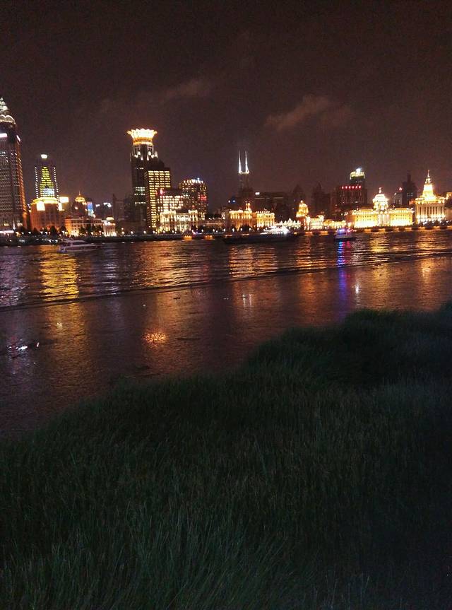 到住的地方休息了一会儿我们就出发去外滩,到外滩时天已经黑了,上海黑的真早呀!
