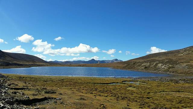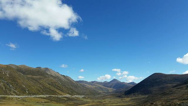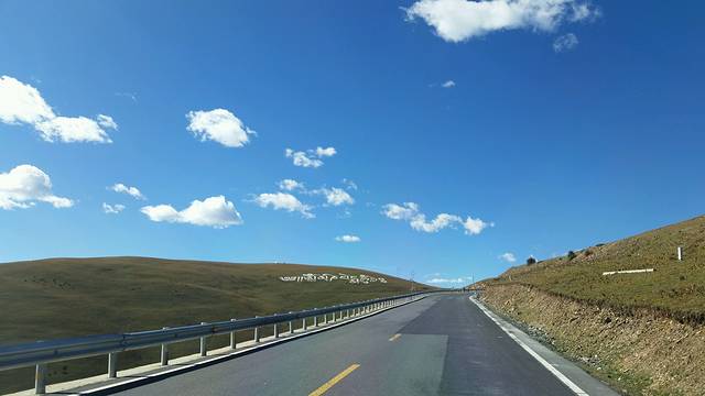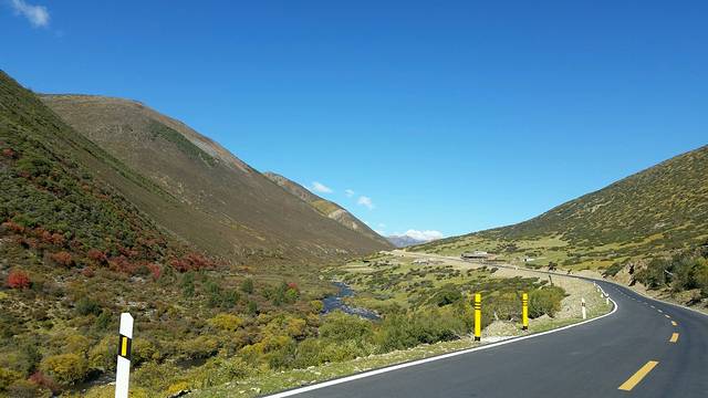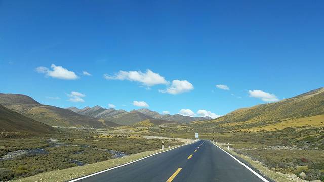 没想到从亚丁出来不到20公里便看到一条新打的柏油路,直指乡城县,索性上了新路。不走不知道,一走吓一跳,这条路简直如同走进了童话故事和油画交织的世界,较之蓝天白云,更多了几分神秘俏皮,美的不要不要的,最关键的是,路上车辆极少,锃亮的公路长期只有我们的车,一瞬间居然有点不真实的感觉。