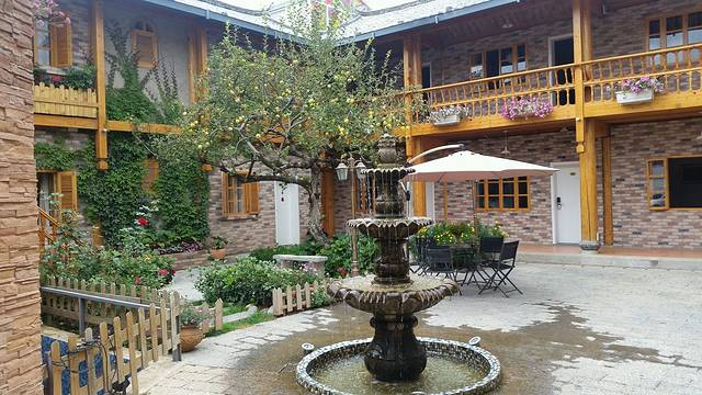 “花筑丽江束河乡谣客栈”,光听名字就很有情调,来了一看确实蛮小资的,环境相当不错,院内还真有一棵苹果树,挂满了苹果,店长是个小伙子,还没有到丽江的时候就打电话来嘱咐丽江下雨了要注意保暖,再三叮嘱路上湿滑开车小心。到了以后帮忙停车提行李,还专门发了短信和应急电话号码,在丽江碰到什么紧急事情可以立即联系他。走了以后又来电询问住得好不好,一路顺风什么的,虽然觉得有点啰嗦,但是人家这个服务真是没话说。国庆期间去哪儿网优惠价279,你们不要尖叫😏😏