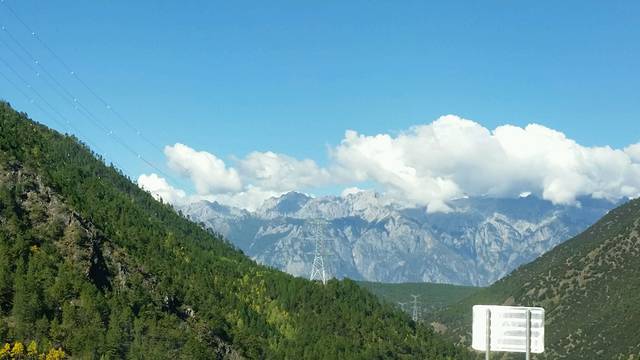 从亚丁到香格里拉是本次旅行最不确定的因素,我们甚至没有订当晚的住宿,就是怕路难走或者出现其它非确定性因素,比如封路啊,堵车一天啊,隔天单向放行什么的。攻略上从亚丁到云南香格里拉市有两条路可以选择,一条是从亚丁-稻城-乡城-然乌-格咱-香格里拉,该路线400公里左右,要翻越大小雪山,有80多公里的碎石路段,导航计算大约需要15小时;另外一条是亚丁-稻城-乡城-得荣-奔子栏-香格里拉,该路线500公里,虽距离远一些,但路要好一点,只有得荣县附近有30公里路段在打路,大约需要13小时。纠结了很久,又是论坛上求助又是问当地人,大家都一致推荐第二条,即从得荣经过,忐忑的决定走第二条,在乡城或者得荣住宿,这样灵活一点,定好后8点钟左右便出发了。
