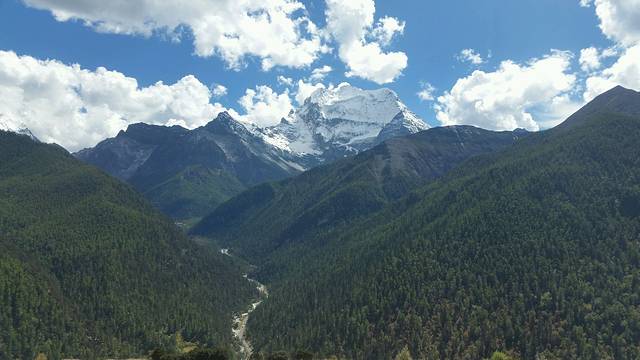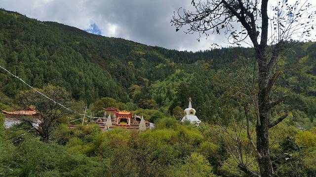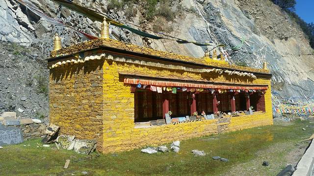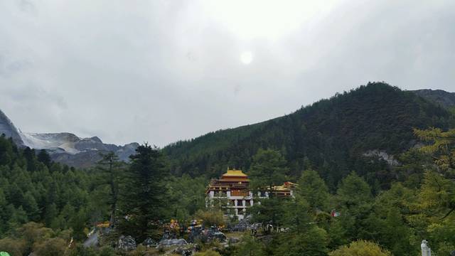 中午12点半左右到达香格里拉镇(原日瓦乡),办理完酒店入住,饭都没来得及吃就赶紧去取票,等车。好在提前一周在网上订了门票(门票+观光车共270/人),不然就只有白跑一趟,因为一直到7号的票都订完了!这里注意,所有自驾的车只能到香格里拉镇,去亚丁景区必须乘坐观光大巴车,路程大约1小时(半途会经过亚丁村,海拔4200,徒步爱好者一定会住在亚丁村,第二天继续前往核心景区-牛奶海),到达扎灌崩后步行20分钟便看到冲古寺了,别小看了这20分钟,在海拔3800的地方徒步,绝对比跑个1500还要累,这时候需要氧气伺候!