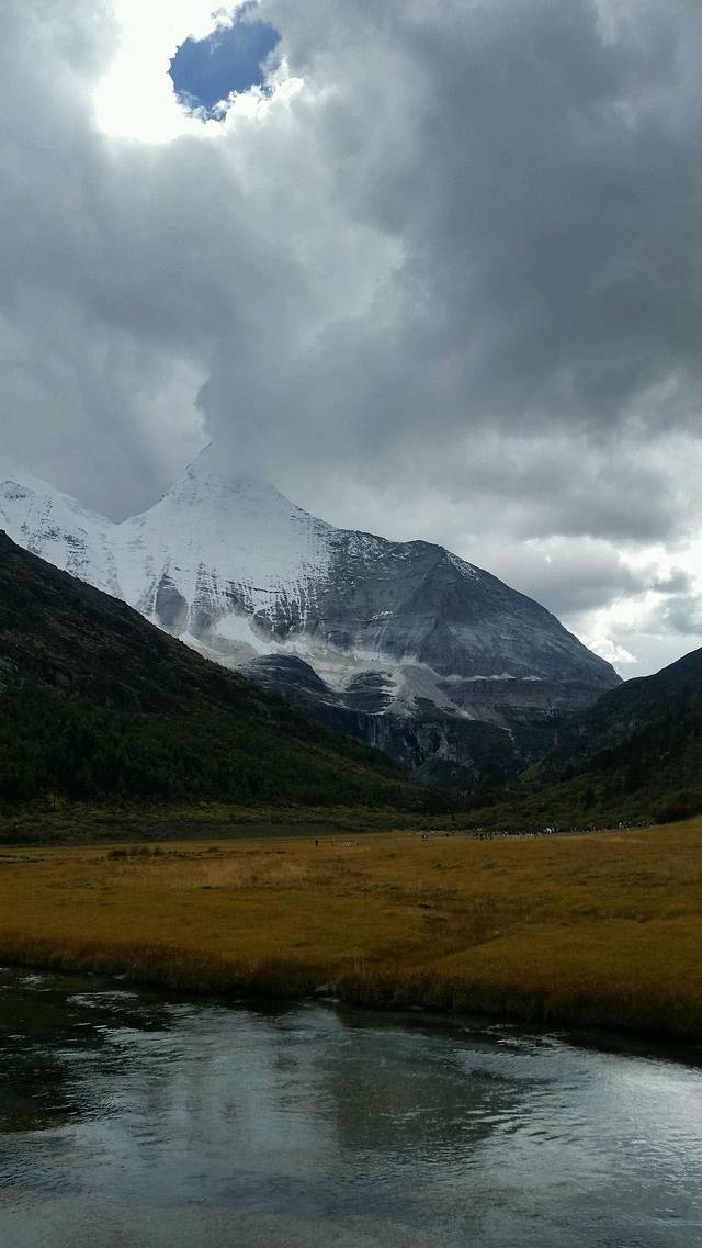 在冲古寺附近坐电瓶车到洛绒牛场,附加费80/人(20分钟左右),至此,亚丁的景色你以为你已经看完了,其实,你只看到皮毛,不过近距离的欣赏仙乃日、央迈勇、夏诺多吉三座雪山也是值回票价。再往里走,就没有交通工具了,所谓的“最后一片净土”,是需要用生命去寻找的,徒步5小时还得爬山……姐果断放弃了。回程排队等电瓶车的时候,一阵阴风吹来,居然开始下冰雹,刚才还阳光明媚呢,真是一言不合就变天😬😬