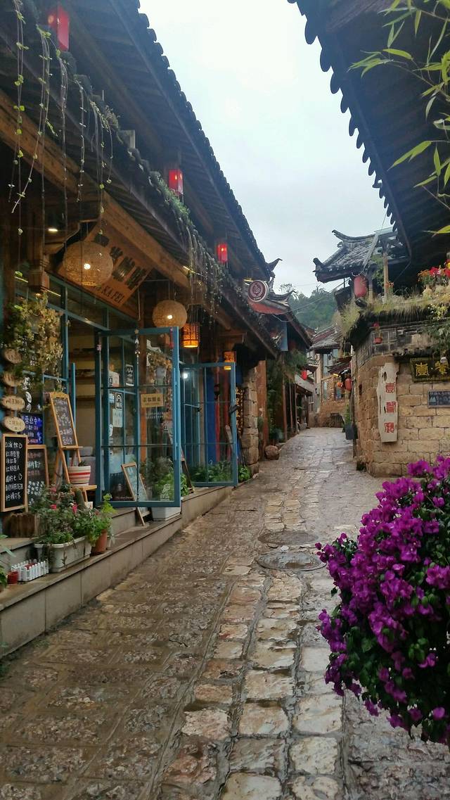 快到丽江的时候,路两旁很多卖丽江雪桃的路边摊,桃子又大又脆,不是特别甜,但是价格特便宜,才2.5/斤,以风云残卷之势狂买一阵,乐得卖桃的阿姨合不拢嘴。这样走走停停,一边耍一边买,到丽江大概下午3点半左右,到酒店休息了一下便去逛束河古镇(酒店在束河古镇)。丽江古镇果然名不虚传,纳西风格的民居简直让人想在此长期居住,很多民居保留了原本古老的建筑风格,内部经过现代的装潢,更显文艺气质。不一会儿下起了小雨,配上小桥流水,亭台楼阁,薄纱轻飘,歌声萦动,真是太应景了!感慨一路的奔波,终于得以停车坐爱,闲情逸致。