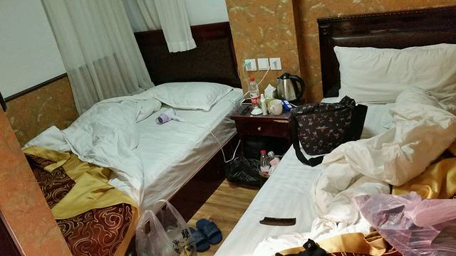 临时在香格里拉订酒店,连续订了两家都客满,于是直接到前台去问,幸运的问到一家叫“裕和华府大酒店”,家庭房才220,入住以后惊喜的发现条件挺好的,也算为劳累和担惊受怕的我们增添了几分舒适。