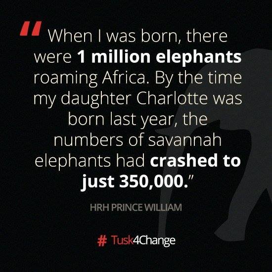 当我出生的时候,非洲仍栖息繁衍着近百万的大象。去年,当我女儿Charlotte出生的时候,非洲草原象已经不足35万头了。——英国·威廉王子