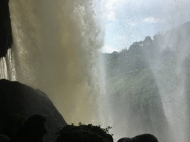 耳边回响的是瀑布水流倾泄而下的巨大的水流声,它不是山涧中流淌的小溪或河流,它是王!那天,我们终于“雨露均沾”哈哈哈!
