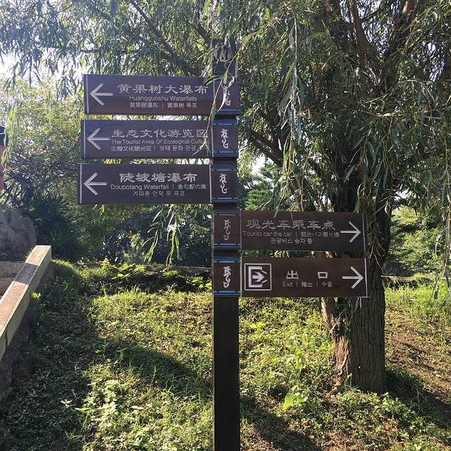到达大瀑布前会经过一个盆景区,听旁边的导游解说:上图里面的树就是黄果树,虽然它和橘树一样会结出相像的果实,但是可以从树叶向上生长这一特点判断它是黄果树。
