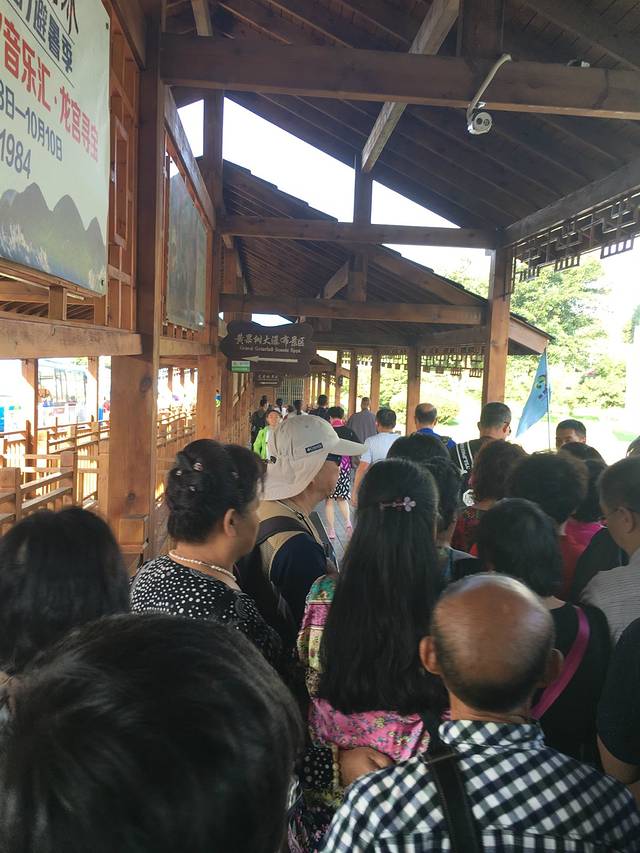 等车的过程直杀售票中心先买票简直争分夺秒有没有! 但是在门口就被那些荧光绿的工作人员截住了,原来是景区电商平台做活动。我们对比了一下里外的价钱,门票180+观光车票50一共230,电商买的话便宜十块钱,虽说不多,不过另外还赠送了一个景点里的80块6D影院门票,所以犯不着和钱过不去嘛,所以我们毫不犹豫下单了,两个人优惠的钱可够我们吃一顿豪华晚餐了!