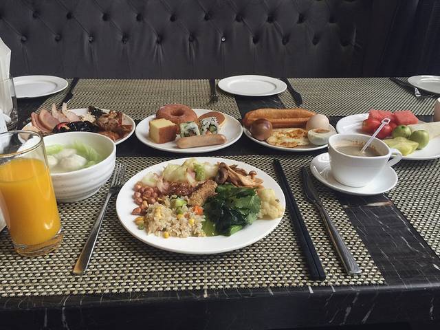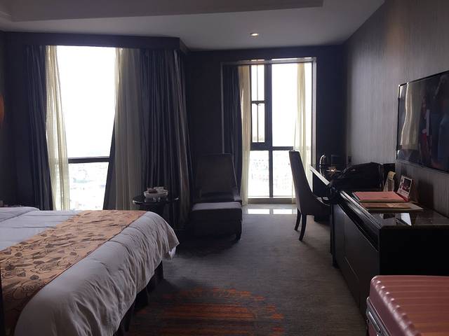 酒店服务很好,毕竟是星级酒店,网上预定的标准大床房,444元/晚,房间面积要小一些,轧先生说床太软不舒服。酒店早餐也不错,吃完早饭就在酒店里溜达溜达,然后回房间收拾行李去金正祥广场乘坐机场大巴。