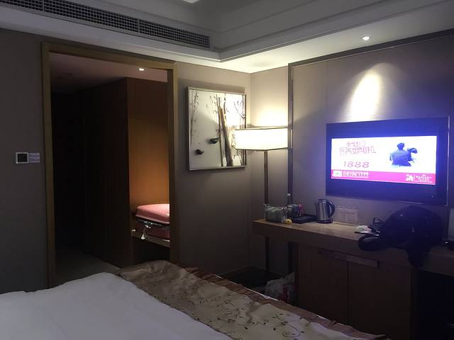 重点来了,住的这家酒店其实是很好的了,在去哪儿网上预定的约定系列主题房,299元/晚,在十一黄金周涨价之际,这个价格能住到这样的酒店还是很可以的。下了车步行走到酒店,酒店大堂有些小,但是逼格还是有的,因为进去就可以闻到好闻的香薰,入住的时候电梯在维修,所以我们就选择了2楼的房间。。。进入房间打开灯真的很漂亮,房间配备独立的音乐播放系统和中央空调,床单被褥很干净,洗漱用品也一应俱全,马桶卫浴选用的是TOTO的,但是房间隔音不太好,总体来说可以给4分。酒店含两份早餐,两碗粥、两个面包、两个白煮蛋、两包小咸菜、两个苹果,是服务员在早上8:00--8:30之间送到房间,早上如果赶时间的就吃不到啦。