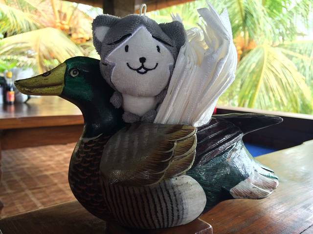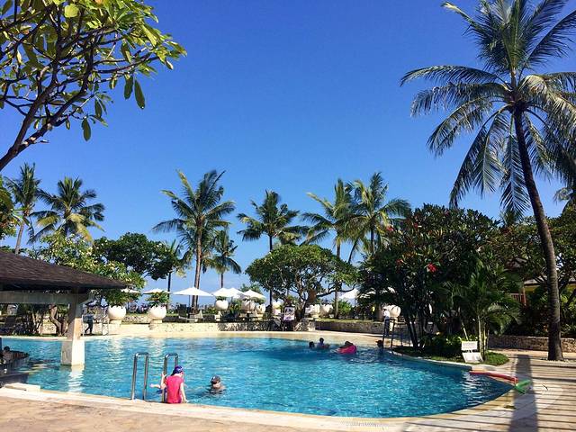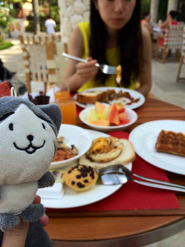早晨在酒店被阳光和鸟鸣唤醒,屋外非常炎热而潮湿,九点多才去吃早饭,餐厅在泳池旁所以可以边吃边看欧美的小朋友们玩水。
