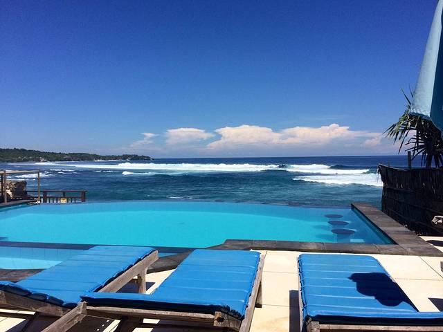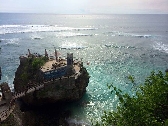 蓝点的感觉非常妙,本来以为只是一个酒店,其实向西的悬崖上有很多餐厅和冲浪店。我则很怂地在餐厅看小伙伴下水。