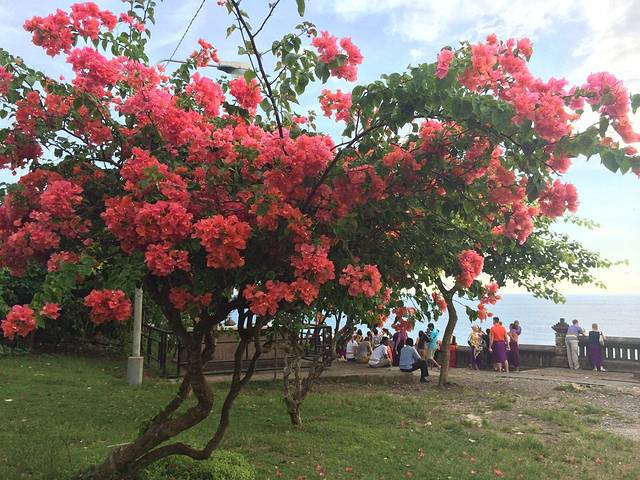 这是我最爱的画面,蓝天碧海绿树还有远方笔直的小路,看着这样的景色喝下午茶,真是享受至极!
