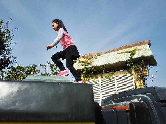 一辆绿皮小火车成了小朋友们的大玩具,大家纷纷爬上车顶,你们是要做铁道游击队?