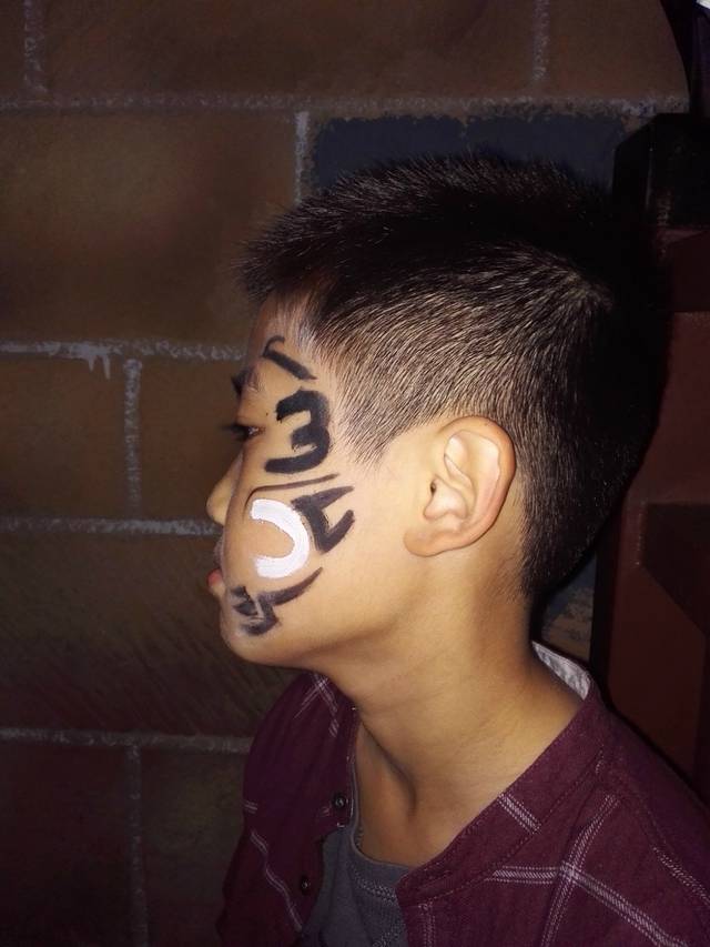 孩子们被门口一个在脸上做彩绘的小摊吸引了,好吧,我来排队!