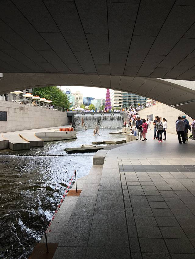 关于这里有个小tip,其实桥洞底下也就这点景色,没什么好看的,导游把我们放在这里,说好半个小时集合的,结果我们的团员十几分钟就三三两两都回来了。导游一看人都齐了,就把我们拉走了。我上了车才发现过了马路200米左右就是光化门广场,我们完全可以过马路去光化门广场拍个照回来也完全来得及!!!