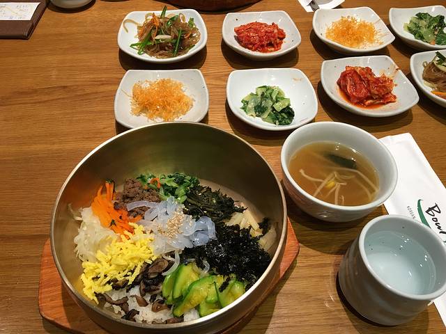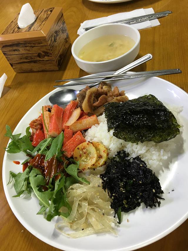 中午随便吃的全州拌饭,结果发现味道还不错!我喜欢这家店的小菜,和外面那些泡菜萝卜相比,算是有特色了,味道也很好!人均60左右人民币也很实惠,哈哈