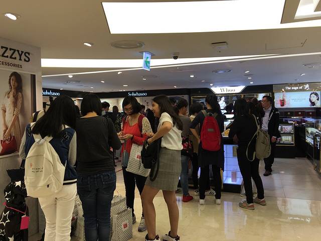 话说回来,楼上免税店不是各种断货嘛,后来我们干脆就去楼下专柜转转。发现专柜其实也挺好的,呼吸套盒后来我就是在专柜买的,专柜买东西可以退税的,退完之后其实只比免税店贵几十块钱,但是乐天免税送的小样都是定量的,有些不送的,但是专柜就没这个限制。当然这种价格差距只是对我们这种普通游客来说。像我们团里有几个人是做代购的,她们专业代购在乐天办了会员卡,买的多了等级不一样可能在免税店里的折扣更低一些,有利润在里面的。