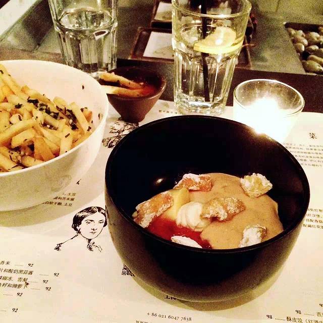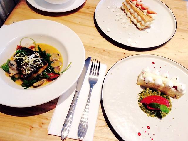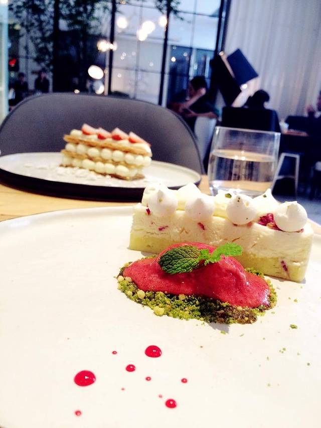 以上是“新浪上海”的介绍,这家餐厅很好找,1号线坐到“常熟路”站,一出来就看到了,门口头顶上的那丛樱花让很多喜欢拍照的女生特地跑过来。我点的是午市套餐,甜点是拿破仑蛋糕。周末要预订,人很多,工作日就还好,我多点了一份草莓甜品,恩~味道还行,但是没什么让人深刻记得的亮点,还是比较喜欢"食社"。