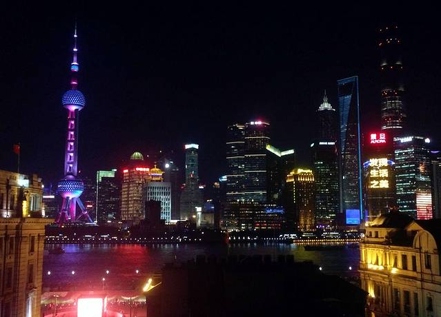 住在外滩附近,晚上在顶楼,阳台上望出去的景色,恩~也挺浪漫的说~虽然白天就是雾霾....