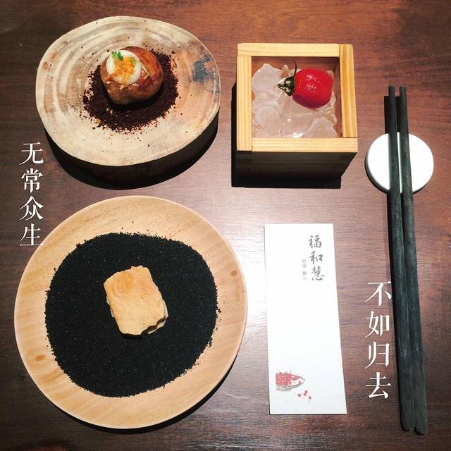 ——“栖身于老洋房汇集的愚园路老街,餐厅名字来源于餐厅主人对福慧双修的理解,禅意十足。餐厅设计邀请了国内顶级设计师吕永中操刀,整个餐厅设计将中国传统元素和现代装饰完美结合,打造一种悠远静谧的禅意韵味。和室内风格相对应,福和慧的菜品也呈现出一种古典而现代的美感。精美的摆盘、西餐的上菜方式、创意融合菜式,处处都体验出不一样意味。