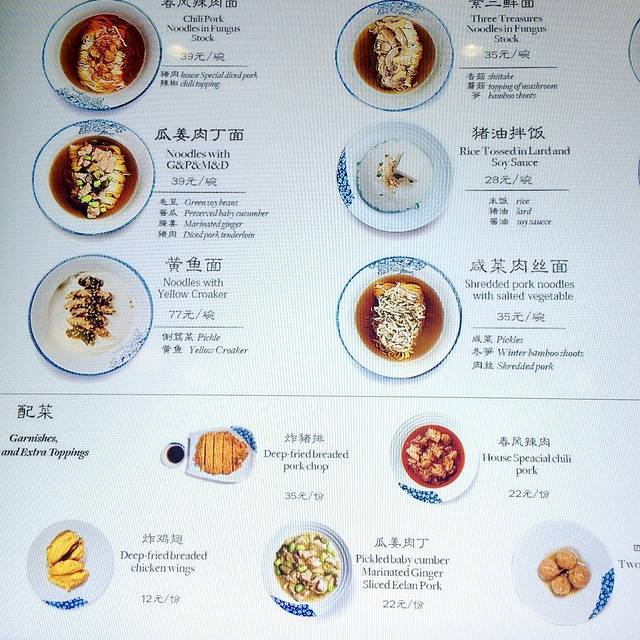 墙上的菜单,黄鱼面下次来试试^_^这次吃葱油