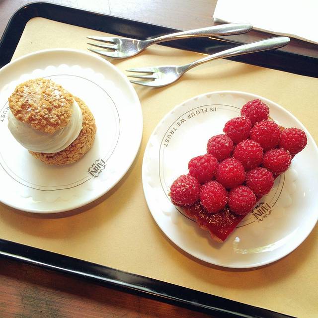 美好的一天,就从甜点开始吧^_^来一份覆盆子挞和泡芙,甜甜的好喜欢,farine家好好吃哦