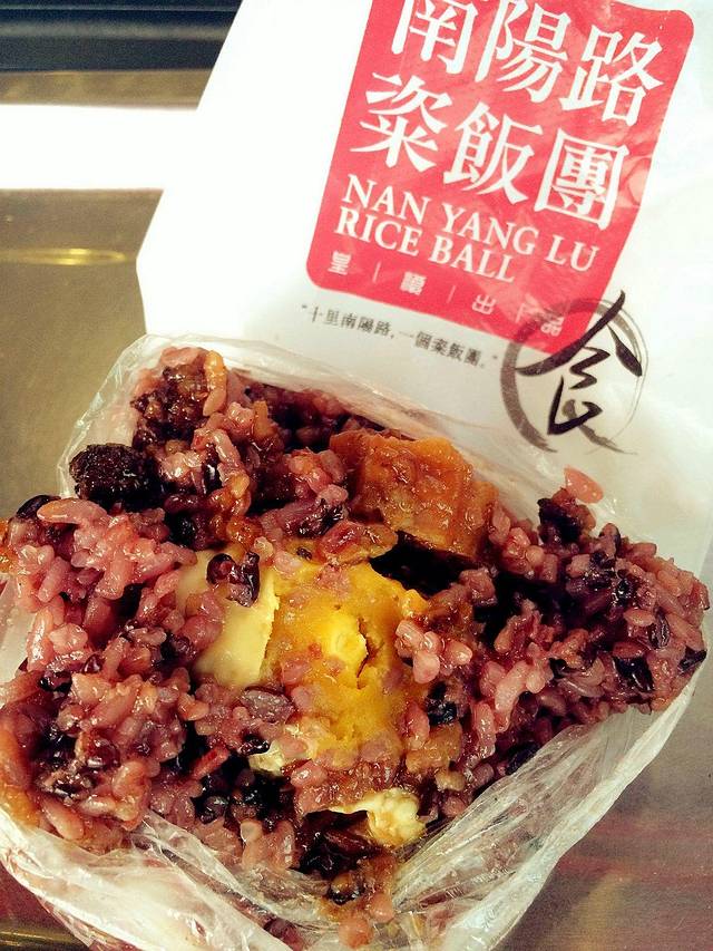这是上海老火的一家糍饭团,排队老长的,除了糯米包老油条,店主阿姨还有特色的肉酱,蛋的选择有虎皮蛋、酱蛋、咸蛋 "沾了肉酱老油条再配点糯米一起入口很特别,价格也适中^_^