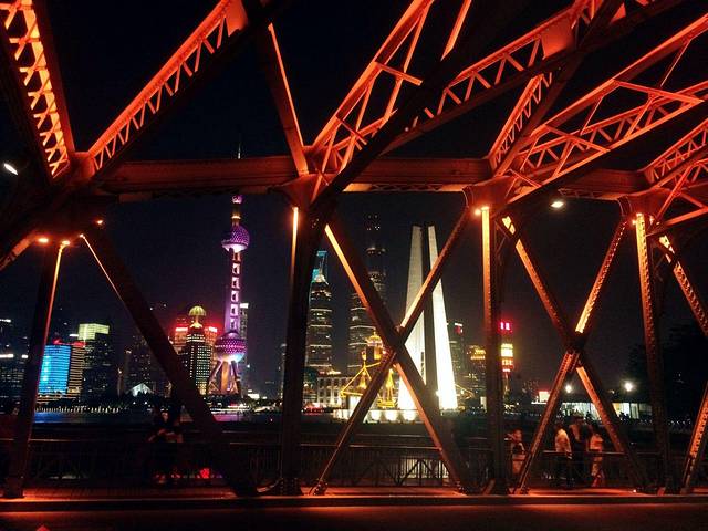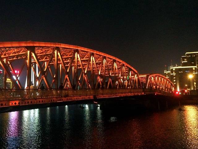 外白渡桥~晚上比较好看~恩这种钢铁架构还满喜欢的^_^白天没有灯光比较冷酷,但到了夜晚就显得很温暖,很多时尚大片都是在这儿拍的