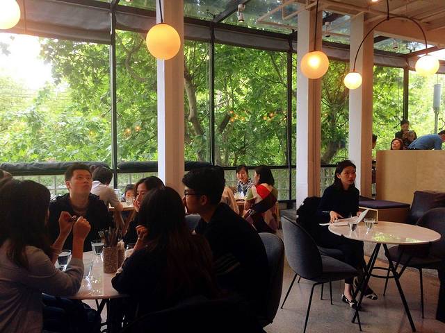 以上是“淘最上海”的介绍,我个人还是比较喜欢隔壁的“咖啡学院”,这家黑鸟餐厅近来在上海非常火,简直是网红店,我是来找咖啡学院的,无意中看到它就在隔壁,所以就近来尝尝咯,点了一道“巨顶蘑菇水煮蛋”和“野树莓酸奶”,味道一般,放的音乐倒是都很好听,环境不错。