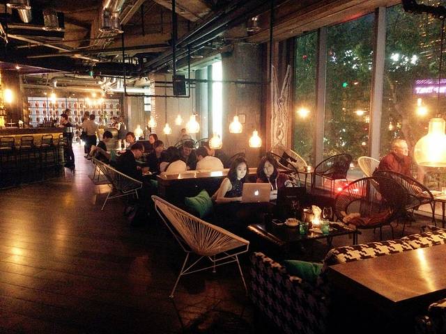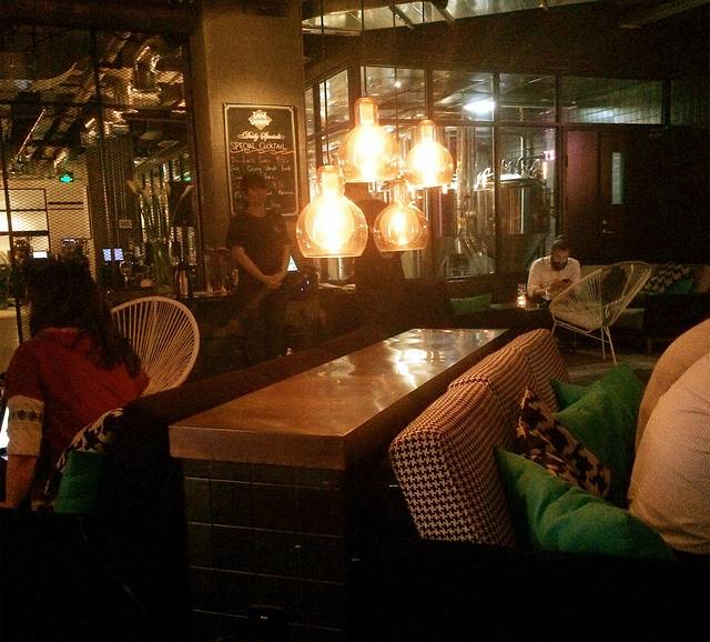 Liquid Laundry是一家纽约风格的美食酒吧,独踞东湖路和淮海路上的KWah中心二楼。现代工业感十足的开阔空间提供不同类型座位选择,吧台、酒廊、开放用餐区以及长桌座位,一应俱全。混搭的设计风格,融入不少现代元素:混泥土房顶,明装管道,木地板及大理石吧台。大面积的落地窗采光极佳,懒懒地在沙发卡座上,和窗外投射进来的斑驳树影一同消磨午后的时光。用餐区后面的透明玻璃房内整齐排列着功能强大的酿酒缸,金属质感外壳与现代风格交相辉映。