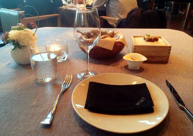 餐厅不提供单点菜单,三种价位的set menu,都是8道菜的分餐制。菜的名字也相当朴实,基本上是直接以主要食材命名,完全不是斋菜的那种让人云里雾里的风雅词汇,也不是用浓烈荤菜来命名素菜的寻常素菜馆那种怪异笔法。