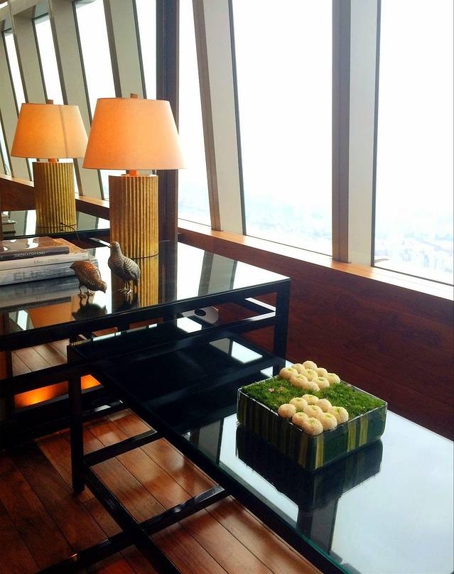 浦东丽思卡尔顿的大名早就听过,杂志也看过很多次,这次来一看,大失所望,没有想象中精致,还是柏悦比较漂亮...坐电梯上去,看到餐厅,放的竟然是街边那种民族风,大厅里都在等位,人声鼎沸,服务生忙得脚不粘地的..坐在沙发上蹭了会网,看到人来人往的还以为自己置身菜市...刚从柏悦出来来到这里真不适应画风..