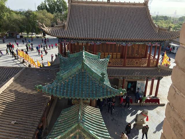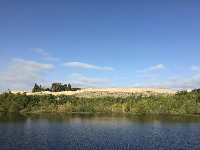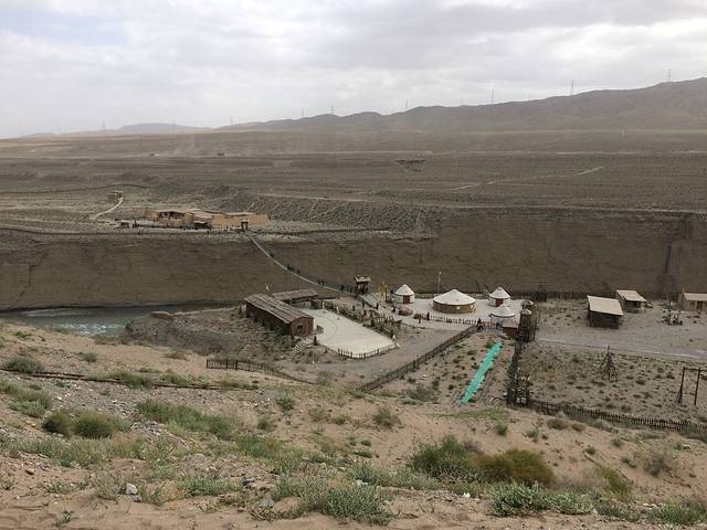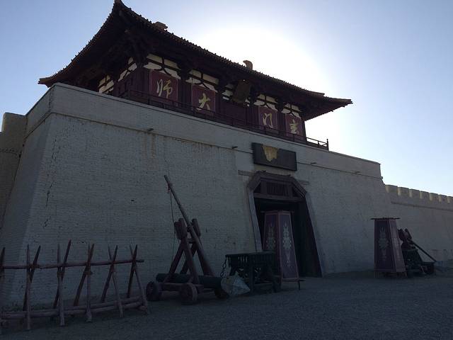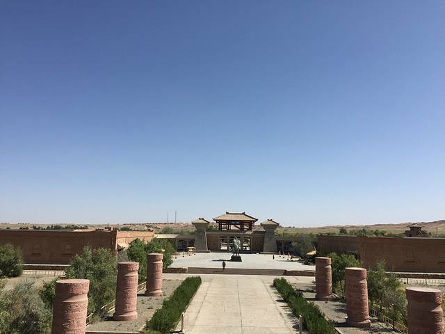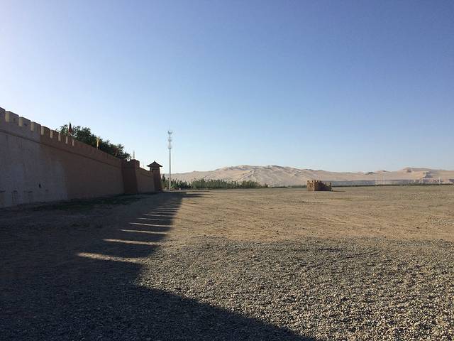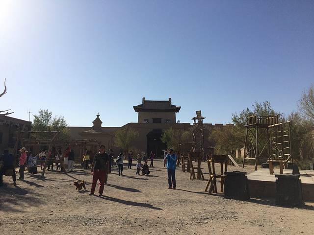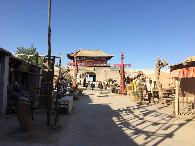 早上8:30司机师傅来接我们,沿着沙漠旁一路向西南行驶,左侧的这片沙漠绵延了40多公里,很快就到了仿宋古城。这是个仿建景点,不是真的古城,大概类似个影视基地,很多影视剧在这里取过景,里面真的还有些西域风情,我们去的时候择天记剧组正在布置场景。门票33元/人,游玩时间约1小时。进入城门左边的驿站处有免费讲解。