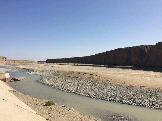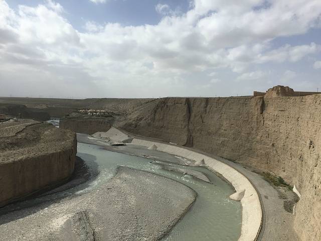 西千佛洞开凿于党河河岸的悬崖峭壁上,是敦煌艺术的重要组成部分,与莫高窟仅隔一道鸣沙山,开凿时间应早于敦煌莫高窟,里面的壁画雕塑十分精美,开凿时的规模很大,但是因为位于党河河岸,被河水冲刷、日照、风蚀,大部分都损毁了,留下的洞窟只有16个,只有其中9个窟可以观赏。敦煌这边的石窟都封闭锁起来了,不能自由参观,而且为了保护文物,窟内绝对禁止拍照。门票30元/人,可参观5个石窟,要在下面排队,然后跟随讲解员参观。参观时间约30分钟,但是下面排队时间不定。壁画上有胖胖的男飞天,真是长见识了。景区的旁边就是党河的河床。