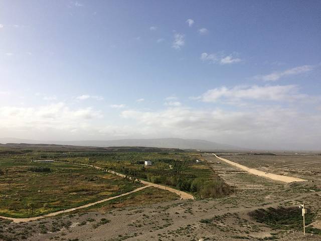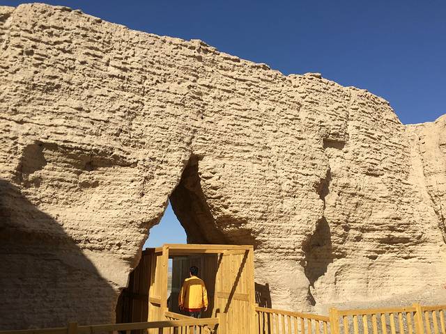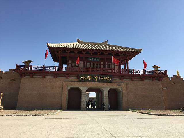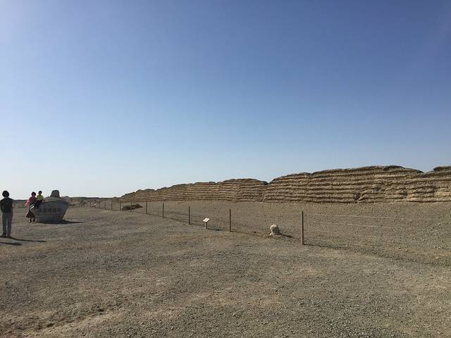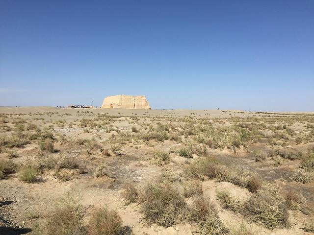 阳关门票41/人,观光车票10元(可加钱选择骑马或者驴车),游览时间约2小时,进景区后先参观一个博物馆,里面全程有免费讲解,然后乘坐观光车前往阳关烽燧,光观车道的旁边就是阳关古道,真正的阳关早已被流沙掩埋,能看到的只是一座阳关烽燧坐落在墩墩山,举目远眺,最前方的一片戈壁就是有名的“古董滩”,据说沙地上散布着古代的陶器碎片、铜箭头、铜带钩、古代货币,还有产自西域的五色料珠、琥珀珠之类的装饰品残片。往前就是阳关故址的掩埋处,再往前有一处湖泊,讲解员说芦苇能长到2米高,从不枯竭,不过因地势原因看不见,最后隔着沙漠的就是祁连雪山。旁边有一处绿洲,现在是一县,盛产瓜果葡萄,可以看到专门晒葡萄干的房子。阳关景点是此行唯一可吃饭的地方,周边有许多的农家乐,但是怕耽误时间,午餐就在车上解决了。