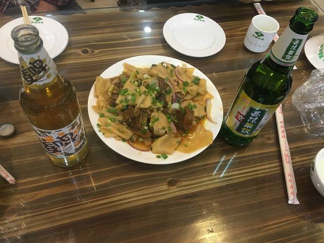 胡羊焖饼,这边羊肉味道很不错,还有当地的啤酒跟小时候喝的汽水一个味道。