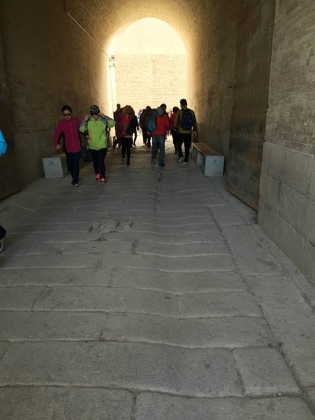 城门,地上有深深的车辙印,城门窄且长,易守难攻