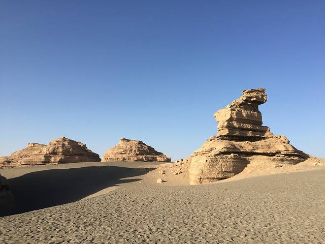 门票120元/人(已包含观光车票),参观时间约2个小时。门口有个展厅,讲述了雅丹的形成过程,景区19:30禁止进入,正是日落的时间,最后的班车大概在18:00,都是为了看雅丹的日落的,现在景区政策是必须乘坐观光车,观光车车上有导游,中间会在固定的4个景点(金狮迎宾—狮身人面像—孔雀玉立—西洋舰队)停车,每个景点给15到30分钟时间参观,不允许换车,也不允许走远。最后的西洋舰队最为壮观,也是欣赏日落的地方,这片雅丹有大部分的地方都没有开发,游客活动也限制在一定范围内,也是为了安全考虑吧。这边风很大,日落后温度骤降,需备好保暖衣物。