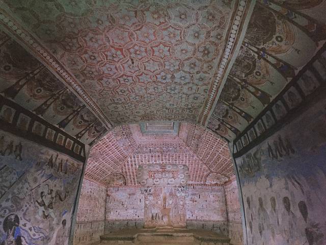 莫高窟的洞窟为了保护现在都封闭起来了,正常票参观区域没什么人
