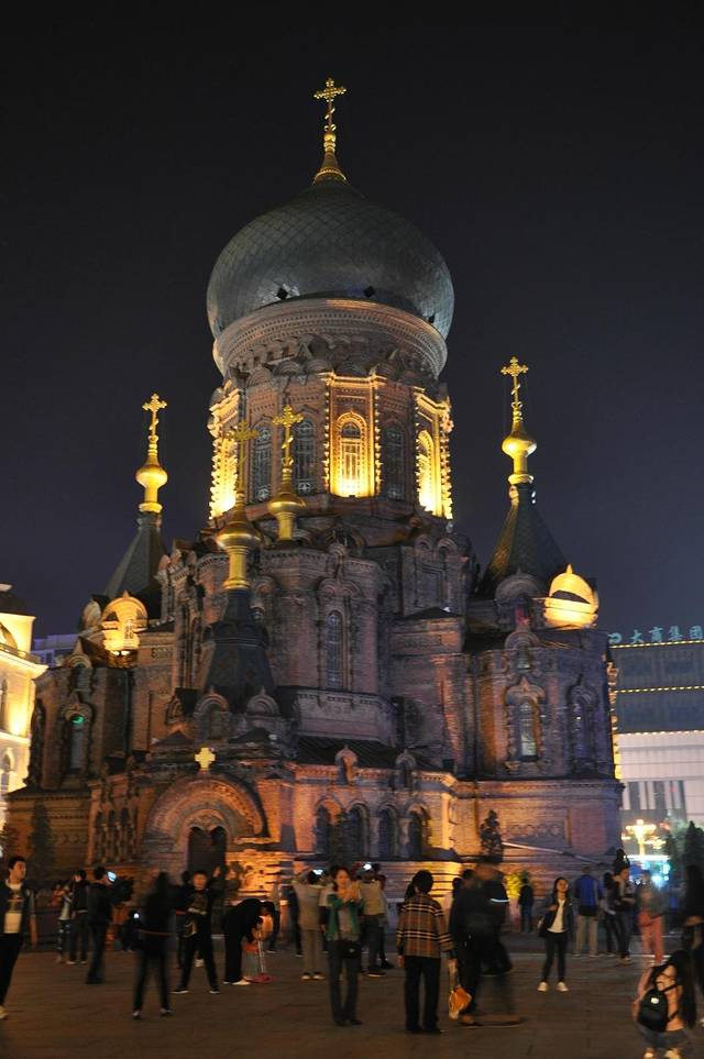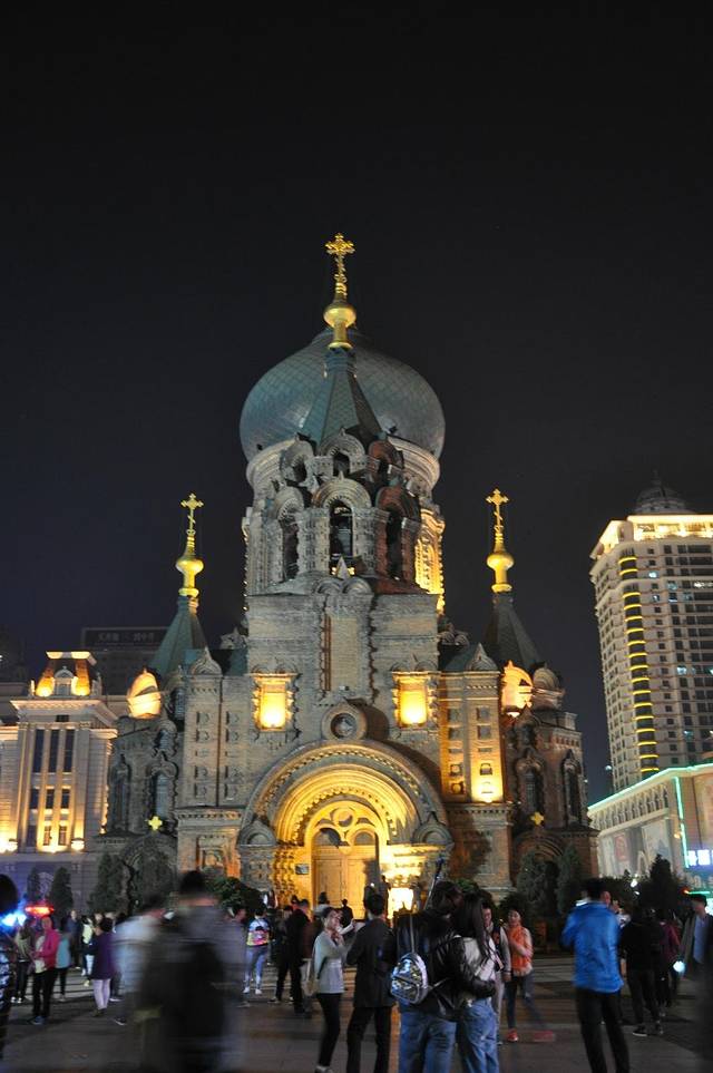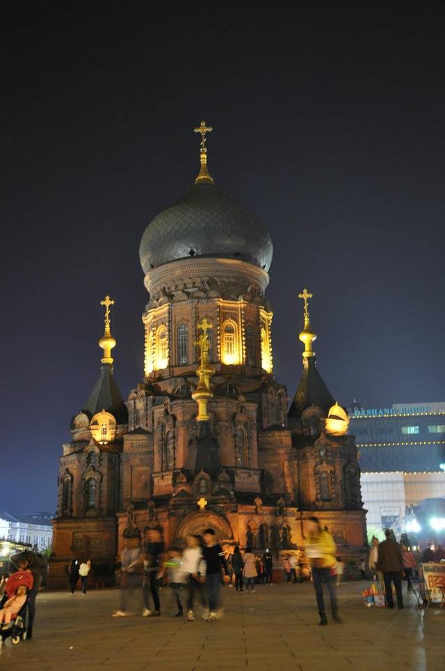 这是第一天下午游览太阳岛的风光和晚上的西餐,还有索菲亚大教堂,晚上的索菲亚大教堂景色很美丽,晚上住在哈尔滨中央大街附近酒店