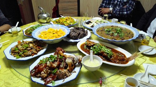 这是中午亲戚请客吃的午餐,这么多,菜量还很大